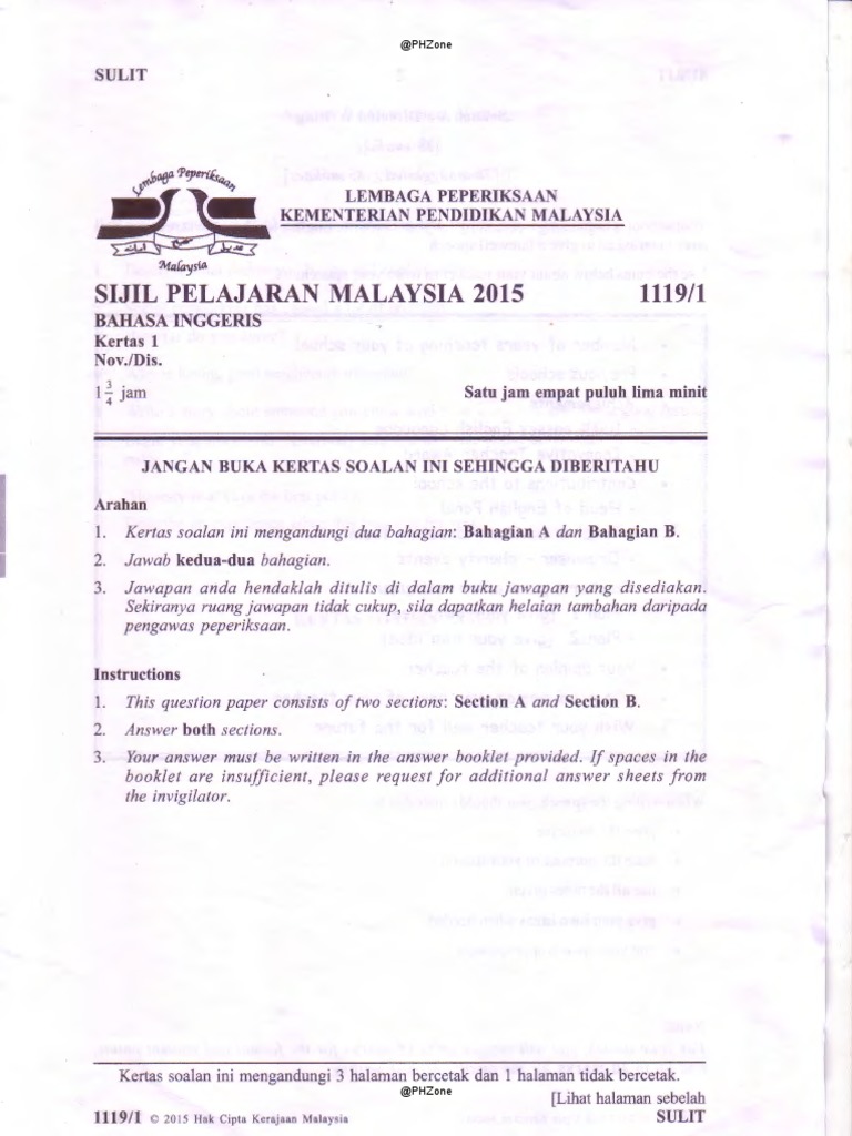 Kertas Sebenar 2015 Bahasa Inggeris 1119 1 Pdf Communication Cognition